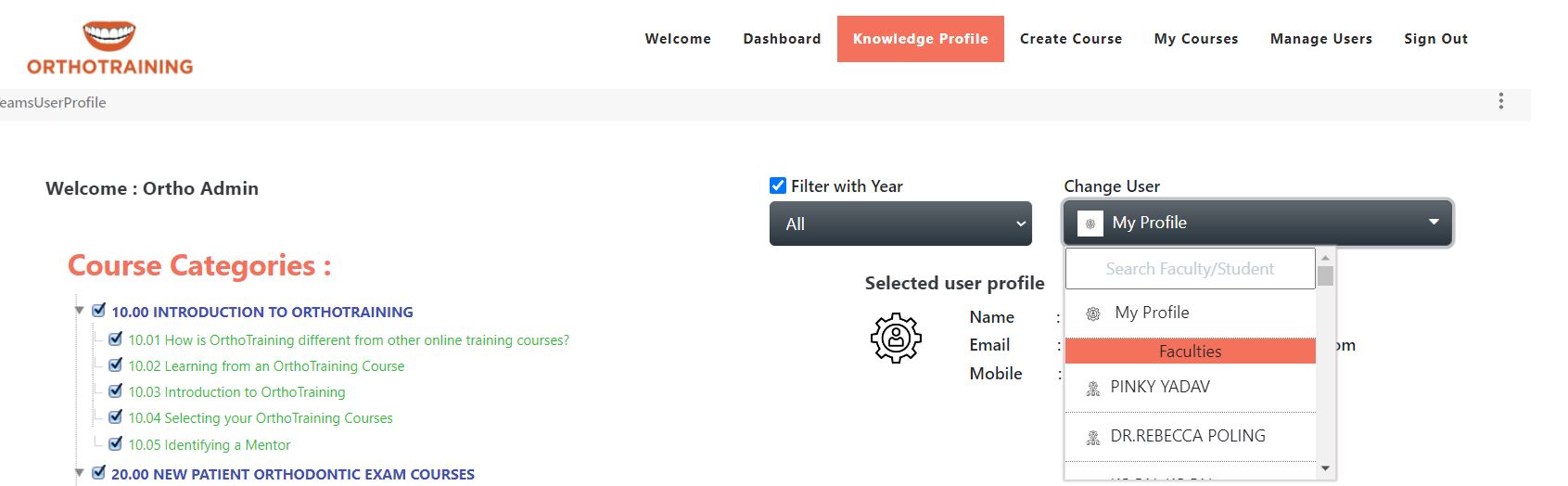 - For assigning a particular course category or categories, select either faculty or student from the Change user dropdown then select the course categories, then click on Save button.