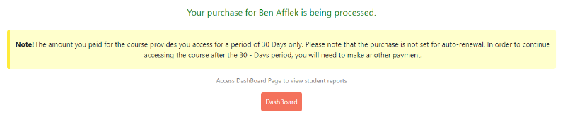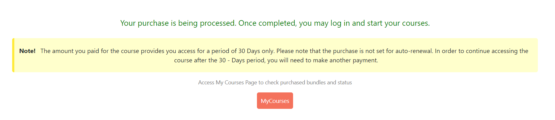 - Upon successful payment, you will be redirected to a page where you can view the details of the subscribed courses.