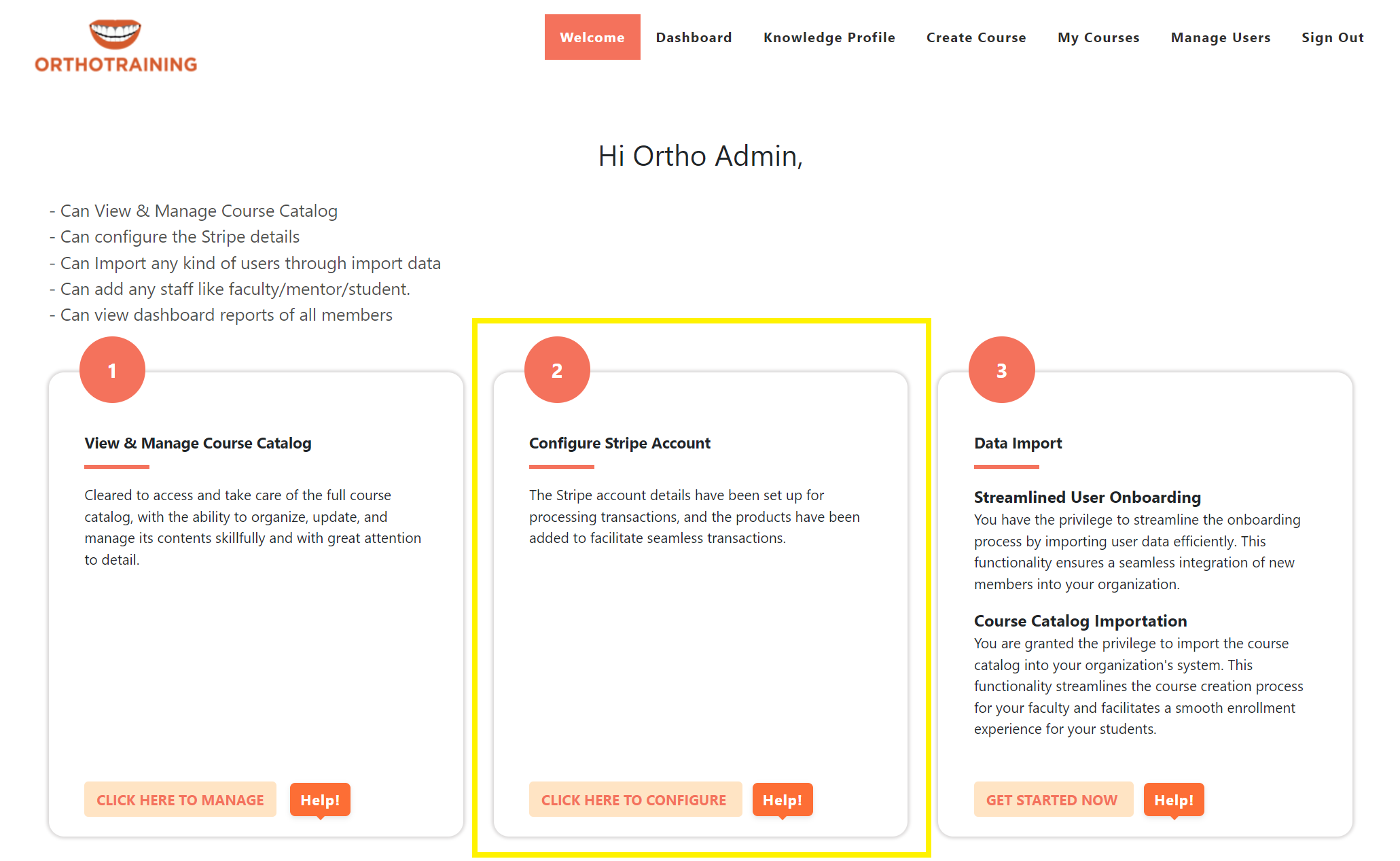 - Navigate to the Welcome page and locate the "Configure Stripe" section.