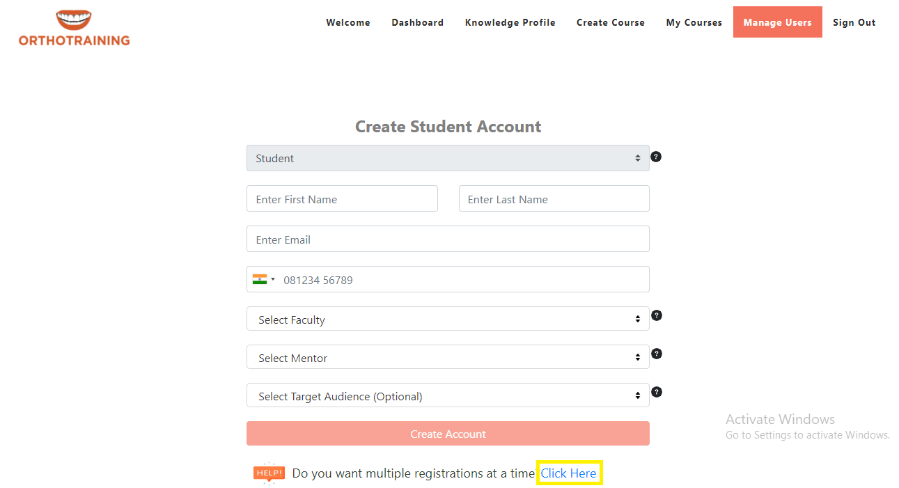 - Click on Click Here button beside Do you want multiple registrations at a time?