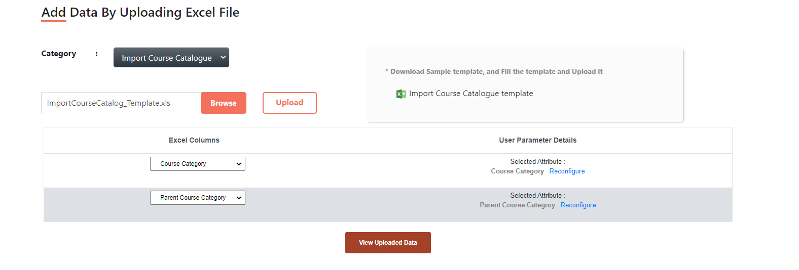 - Map the course categories of the excel column to the parent course category and click on save button.