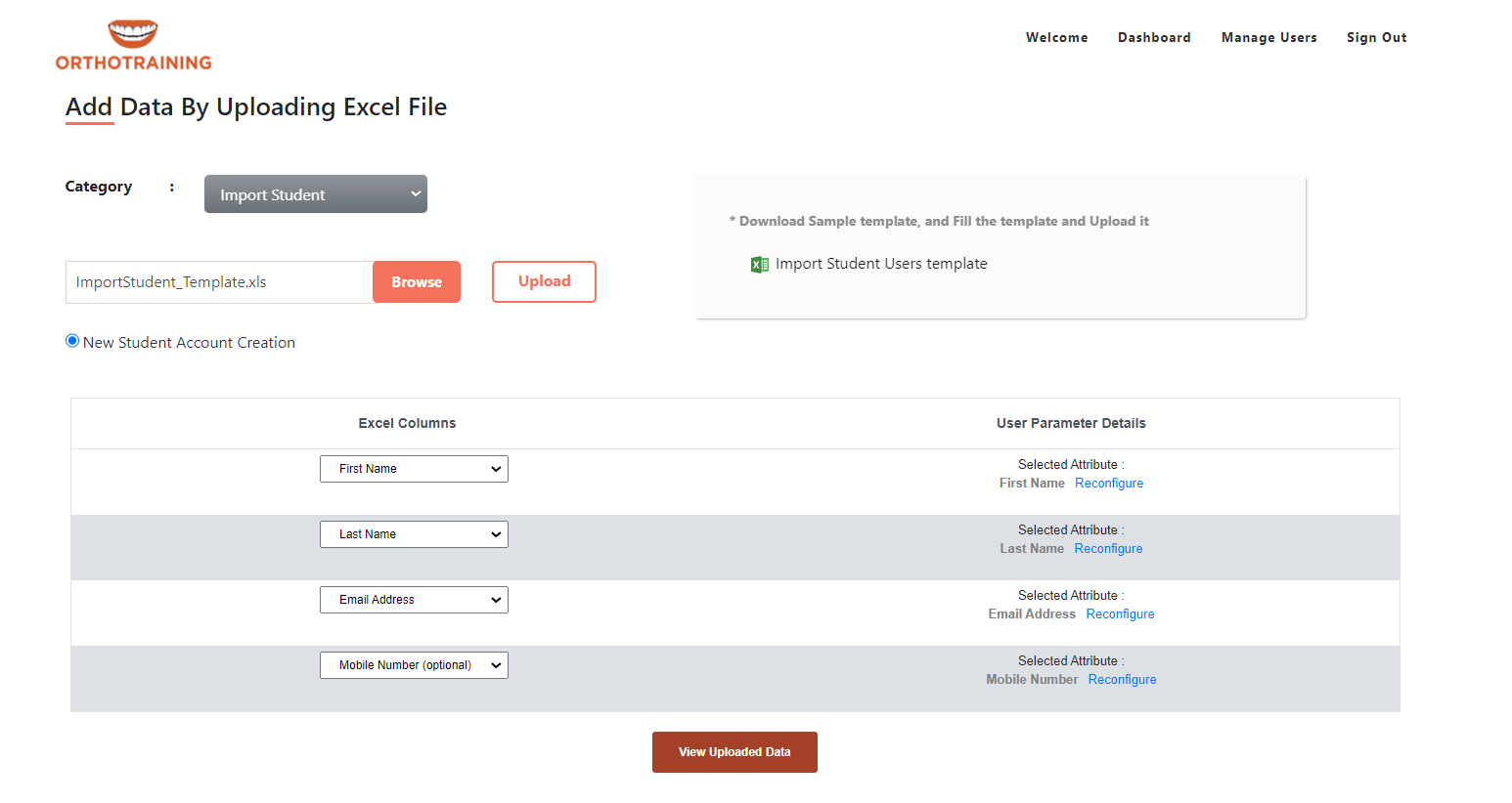 - After configuration, click on "View Upload Data" to preview the uploaded data.