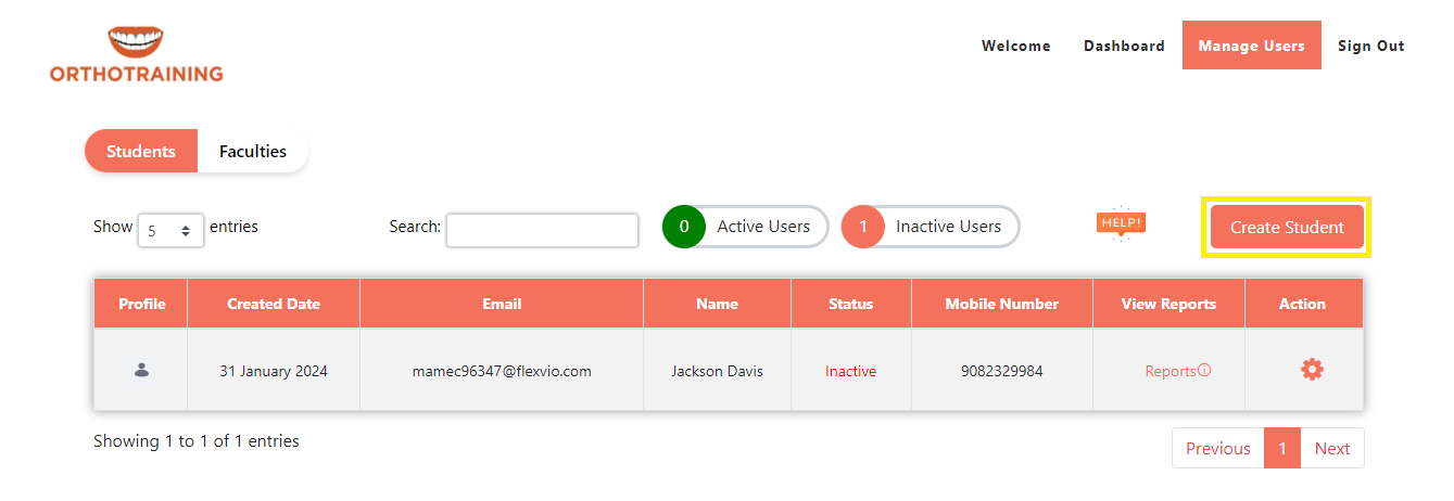 - Within the student tab section, locate the "Create Student" button, and use it to create new student profiles.