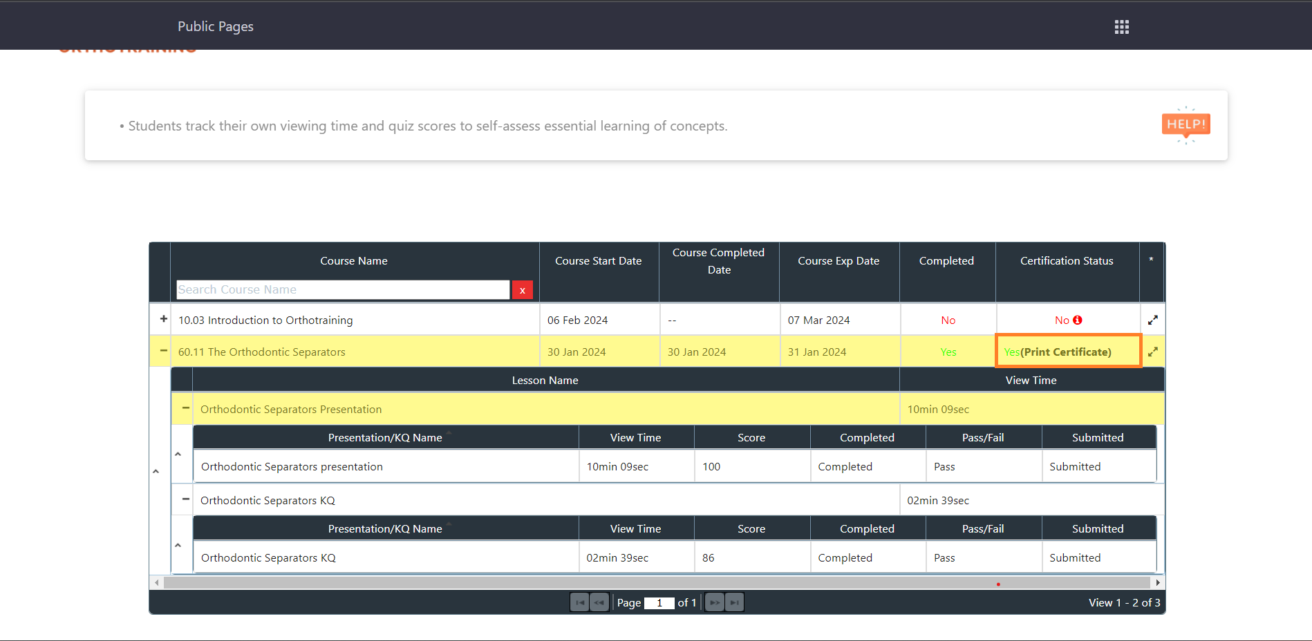 - Here, you can view all of your courses status completed or not, course completed date, Certification status.