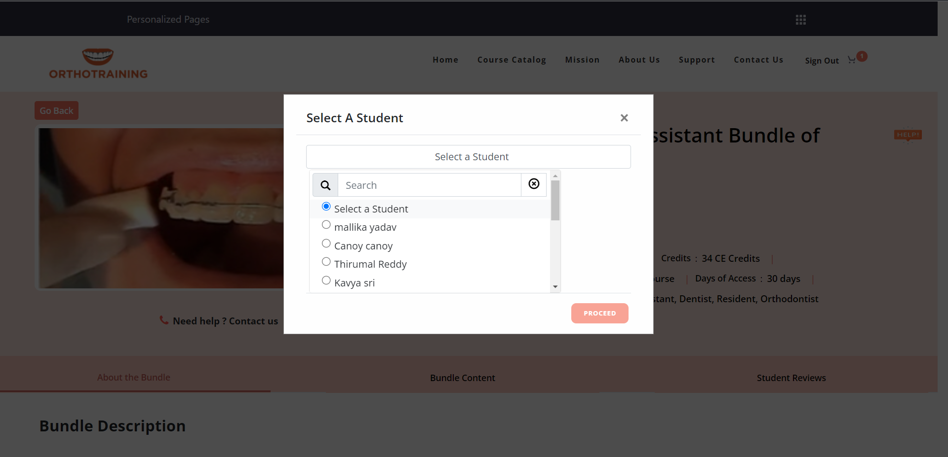 - Proceed with the purchase after selecting the student by clicking the "Proceed" button.