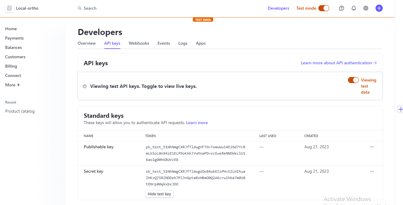 - From the Dashboard, copy the necessary keys - the Public Key, Secret Key, and Account Key.