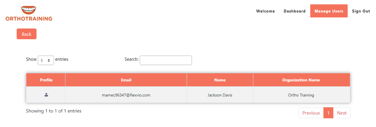 - Click on Manageusers page, redirected to a page where you can view existing users.