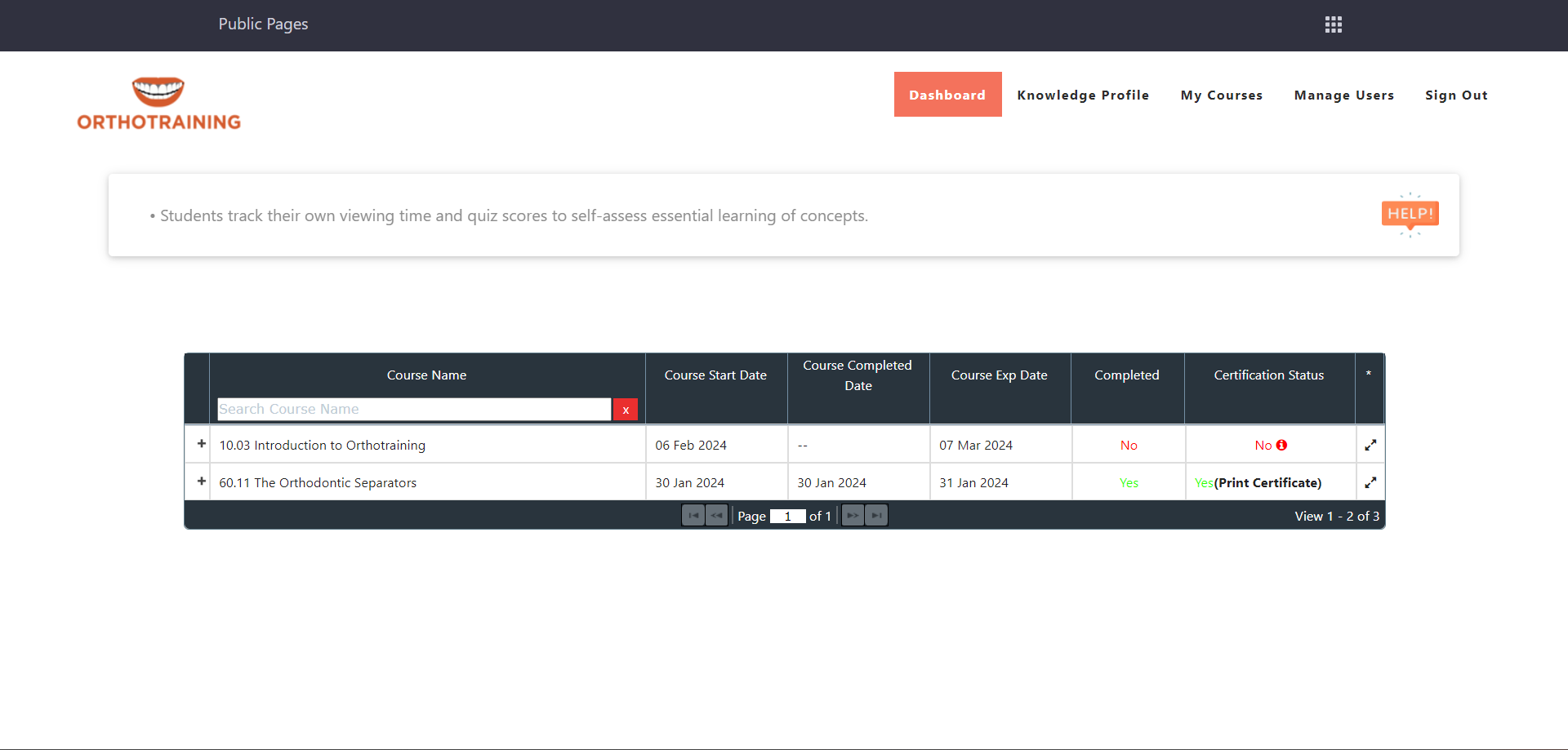 - Here, you can view all of your courses status completed or not, course completed date, Certification status.